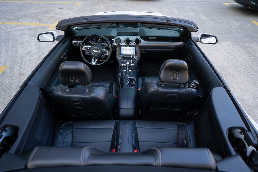The convertible is equipped with a 2.3L EcoBoost engine producing 310 hp — more than enough for confident city driving and scenic coastal routes. It accelerates from 0 to 100 km/h in just over 5 seconds. The car is in excellent condition and ready for your trip today.